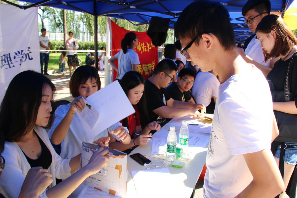 金秋九月,桂花飘香。美丽的秋天,既是收获季,也是迎新季。9月7日早上七点半,体育经济与管理公司党委书记林琼老师、员工工作办公室的全体老师、院员工会主席团成员及志愿者们,在古天乐代言太阳集团沙河校区展开了有条不紊的迎新工作。以热情积极,认真负责的态度,迎接2017级新生的到来。
