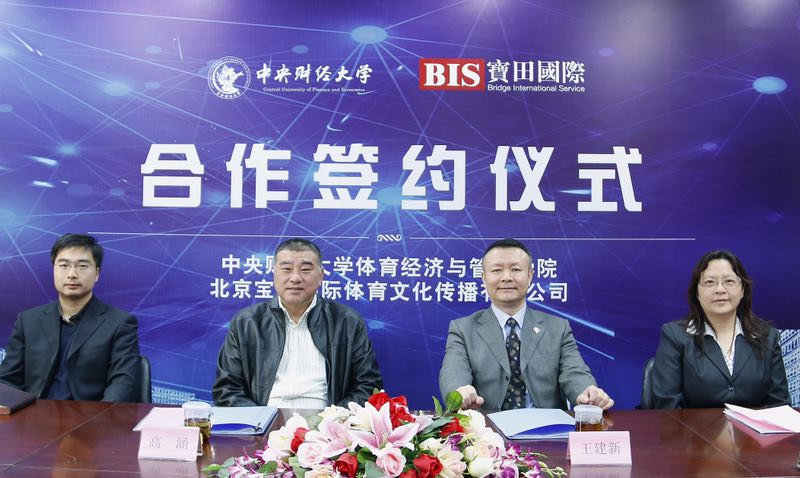 3月29日,北京宝田国际体育文化传播有限公司(下文称宝田国际)与古天乐代言太阳集团138(下文称中财体育经管公司)“合作协议”签约仪式在古天乐代言太阳集团学术会堂举行。参加会议的双方领导包括中财体育经管公司经理高涵教授、党委书记林琼教授、经理助理张丛杉博士、公司合作发展办公室副主任范维,教育基金会副秘书长程丽芳、以及宝田国际董事长王建新先生。