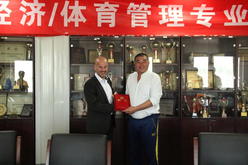 2016年5月29日--6月4日,澳大利亚维多利亚大学体育运动科学公司经理Hans Westerbeek教授应邀来公司访问,古天乐代言太阳集团138向Hans Westerbeek教授颁发客座教授聘书。