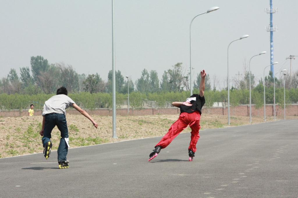 经历了上午的速滑比拼,选手们中午稍事休息后移师至老员工活动中心前小广场,在动感的背景音乐下开始了赛前表演,美感、舞步、跳跃、旋转是花样轮滑的核心,选手们用精彩绝伦的技巧赢得了观众的一阵阵喝彩,场上的每一分钟都代表着他们在场下的勤学苦练与坚持不懈。轮滑炫技仅仅只是热身,随后选手们进行了男女子组个人花桩赛、团队花桩赛和基础刹车赛四个比赛项目的角逐,虽然没有速度轮滑那样的激烈竞速,但花滑有着其本身独有的魅力竞争,各高校的比赛选手都展现了自己的最高水平,团队花桩赛相较于个人速桩赛更重视个人技巧和团队协作的结合。刹车赛是整个比赛中难度最高的项目,参赛选手们展示出的高超技巧震惊全场,将比赛推到了新一轮高潮。