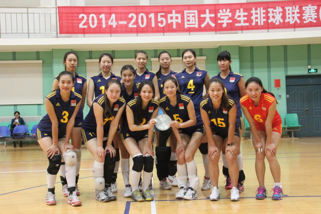 1/8决赛,我队迎战上届总决赛冠军——北京航空航天大学队,大家不仅奉献了一场精彩的比赛,而且以3:1战胜对手,顺利晋级四强。在1/4决赛中,我队憾负实力强劲的北京体育大学队,只能与中国海洋大学队争夺季军。尽管已经稳操明年总决赛的入场券,但女排姑娘们始终没有松懈,而是以饱满的精神状态和娴熟的技战术打法,以3:1战胜对手,获得本次比赛的第三名。获得冠军和亚军的队伍分别是北京体育大学和山东师范大学。
