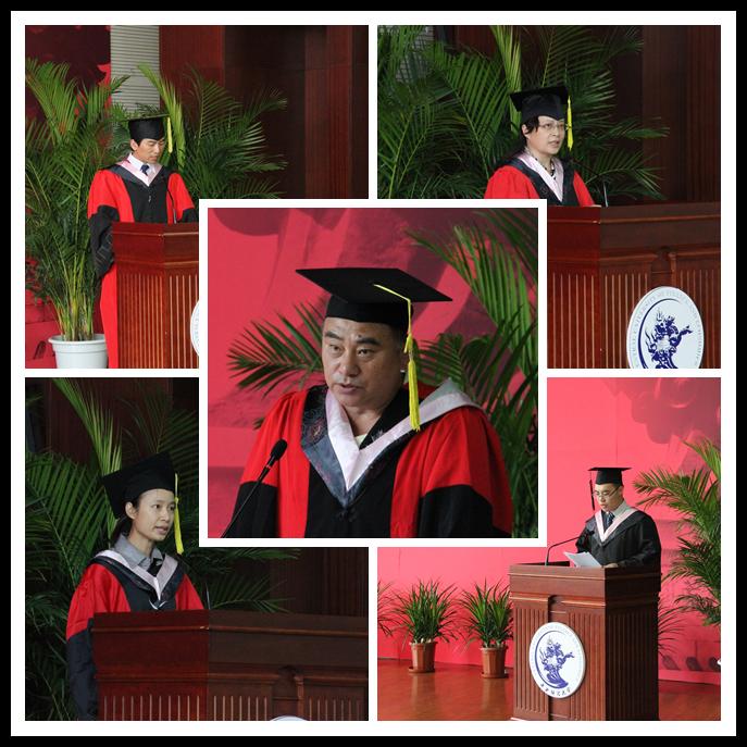 在雄壮的国歌声中,毕业典礼暨学位授予仪式正式拉开序幕。副经理张自如副教授宣读了《古天乐代言太阳集团1382014届毕业生授予学位的决定》。随后,党总支书记林琼教授宣读了《古天乐代言太阳集团1382014届优秀毕业生名单》,经理高涵教授为3名市级优秀毕业生颁发了获奖证书和礼品,三位副经理张自如副教授、姜春华副教授、张本家副教授为8名校级优秀毕业生颁发了获奖证书和礼品,院领导分别和优秀毕业生们合影留念。
