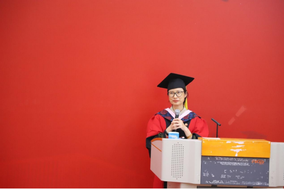 2019级1班班主任王裕雄教授代表任课老师发言。王老师和毕业生分享了三点体会:第一,要做一个简单的人,要勿忘初心用简单来对抗世界的复杂;第二,要做一个纯粹的人,正直、善良、宽容这些美好的品质一定是有价值的,能够为我们带来宝贵的收获;第三,要做一个善于感受幸福的人,要珍惜当下,哪怕幸福不是那么轰轰烈烈。王老师给毕业生们送上殷切而美好的祝愿,“纷繁复杂的人生里一定有很多美丽的风景,但也有很多困难和坎坷。衷心希望大家能够阅尽风景,跨越坎坷!”