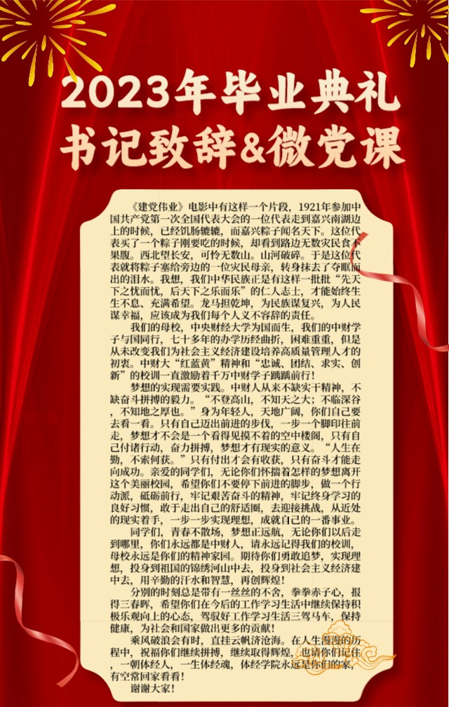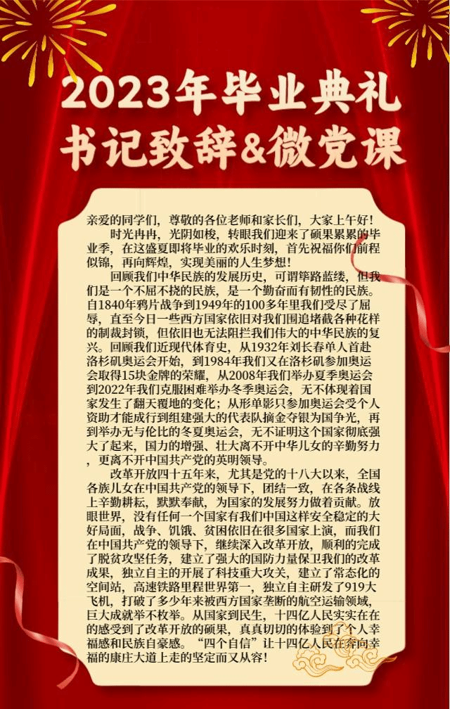 2023年毕业典礼书记致辞&微党课