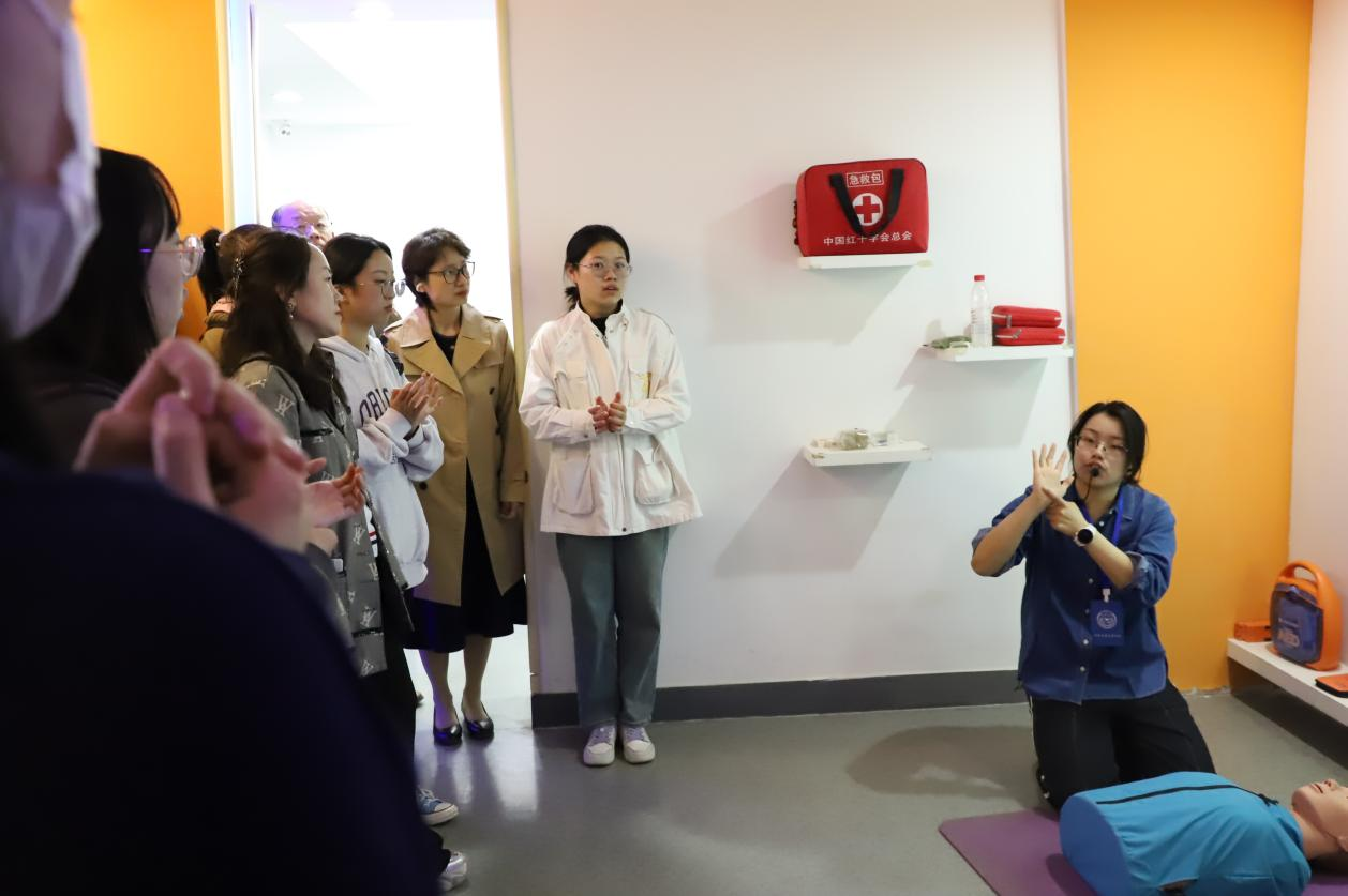 在此次活动中,师生们首先接受了专业讲解员的引领,深入学习了心脏骤停时生命线——胸外按压的准确手法。通过模拟实际操作环节,每位参与者均亲自实践,确保掌握了这一关键急救技能,继而全体成员详细了解并操作了自动体外除颤器(AED),通过模拟使用过程,深刻认识到了在紧急情况下快速利用AED进行救援的至关重要性。