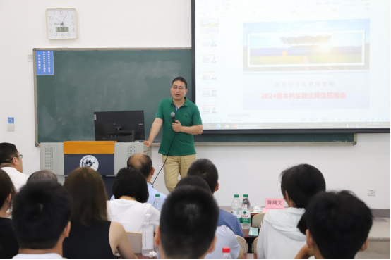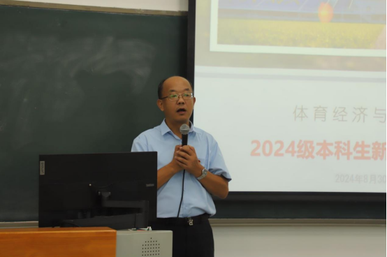 2024年8月31日上午,在沙河主教213教室举行了2024级本科新生师生见面会和新生开学第一课。体育经济与管理公司党委书记宋立岩、经理张本家、副经理王欢、副经理张丛杉、党委副书记陈绮文、体经24班班主任马法超、运训24班班主任刘韬晓瑜、体育经济管理公司各内设机构负责老师、新生辅导员张振磊和周正、新生班级助理及“芮+”导师等出席了新生见面会。师生见面会旨在帮助新生更好地了解公司的情况,做好从高中到大学的过渡,更快地适应老员工活。