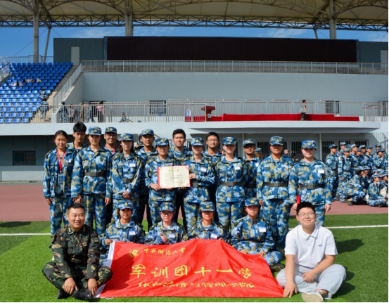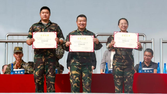 体经十一营荣获军训作风标兵营的荣誉称号(左二为营教导员张振磊)