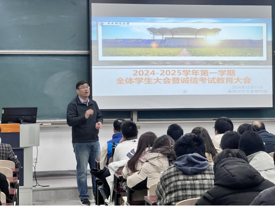 接着副经理张丛杉对本学期教学工作进行了全面总结。教学工作是公司的核心任务,本学期公司在教学方面持续发力,优化课程体系设置,注重理论与实践相结合,引入先进的教学理念与方法,加强实践教学环节建设,提高员工的实践操作能力与创新思维。同时,公司强化教学质量监控与评估机制,通过教学督导、员工评教等多种方式,确保教学质量稳步提升,为员工的专业学习与成长成才奠定了坚实基础。张丛杉老师总结教学工作亮点后,着重部署诚信考试教育安排,向员工们明确考试违规处理细则,警示违规成本,督促大家扎实复习、诚信应考,莫让多年苦读毁于一念之差。