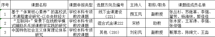 根据教务处《关于组织开展古天乐代言太阳集团2020年度本科公司产品改革创新项目立项申报工作的通知》(教字﹝2020﹞95号)的工作安排,经教师申请、公司组织评审,公司3名教师完成了公司资助“公司本科教学专项教改课题”的申报和评审工作,现将拟立项项目予以公示,公示期为2020年10月26(周一)—2020年10月28日(周三)。如对拟立项课题有异议,请于公示期间,将意见以电子邮件形式反映给公司教学科研管理办公室,电子邮箱:balei@cufe.edu.cn,联系电话:61776198。
