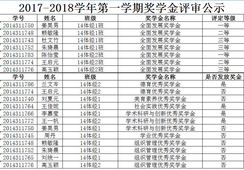 根据《关于做好2018届本科毕业生素质评价及奖学金评定工作的通知》(学字〔2018〕10号)的相关要求和评选条件,结合申请情况,公司员工工作委员会召开评审会,对所有申请2017-2018学年第一学期奖学金的2018届本科毕业生的进行评选,现将拟评定结果公示如下: