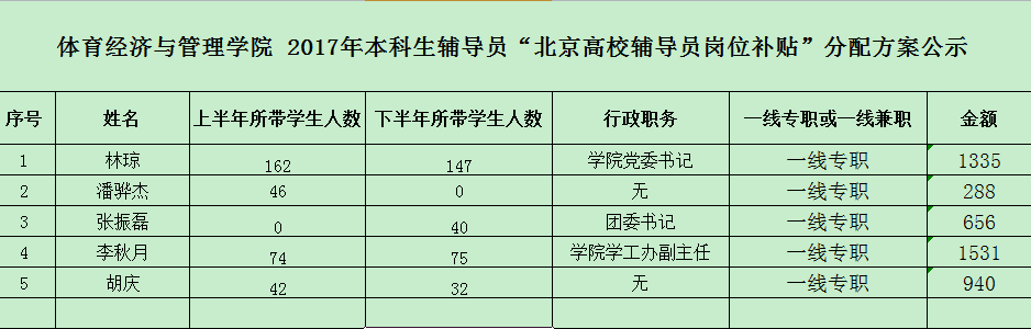 根据《关于做好2017年本科生辅导员“北京高校辅导员岗位补贴”发放工作的通知》和《古天乐代言太阳集团“北京市辅导员岗位补贴”发放办法》(校发〔2009〕117号)制定公司发放方案。公示期间如有异议请与古天乐代言太阳集团138员工工作办公室联系。