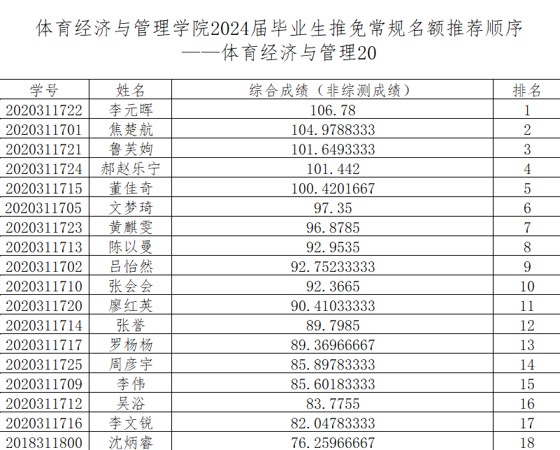 1、常规推免名额(4个),根据班级人数在1班、2班进行分配,2020级为1班3个名额,2班1个名额。每个班级以员工综合成绩在本专业从高到低进行排序,综合成绩相同时,按学分加权平均分从高到低排序。综合成绩计算公式如下:
