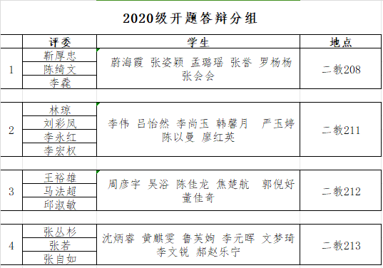 2020级本科生毕业论文开题答辩分组