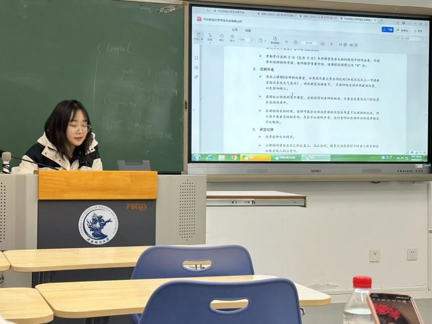 体育经济与管理23-1班于3月17日召开主题班会,围绕学籍管理细则、毕业论文筹备要点及校园礼仪规范展开学习。学习委员结合大二年级的学情特点,重点解读了课程重修政策、专业方向选择及学科竞赛加分规则,提醒同学注意上课规范以及考试规范等。针对毕业论文准备,学习委员分享文献检索技巧与学术规范案例,建议结合专业课程提前拟定研究方向。在礼仪角度,学习委员以"课堂-宿舍-校园"三场景为切入点,演示电子设备使用规范、师生沟通礼仪及公共场合行为准则。