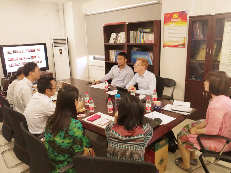 2018年5月29日上午10:00 ,法国里昂商公司ANT OINE HANINCOURT-体育产业管理项目负责人和里昂商公司中国区项目招生官曹俊来访公司。公司副经理王裕雄、经理助理张丛杉、专业课教师张若副教授、刘彩凤副教授、陈绮文副教授、办公室主任邓丹老师、员工工作办公室负责人李秋月老师以及员工代表参加了本次会议。