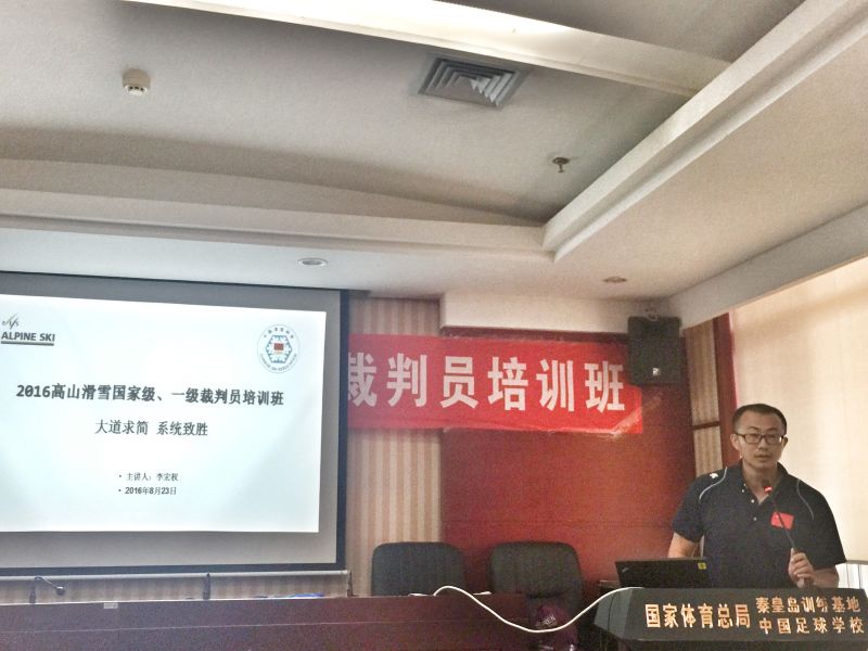 为提高我国高山滑雪裁判员的业务水平,加快高山滑雪裁判员队伍建设,保障高山滑雪各级各类赛事的裁判需求,推动高山滑雪运动在全国的普及和发展,国家体育总局冬季运动管理中心于2016年8月22-24日,在总局秦皇岛训练基地举办了高山滑雪国家级和一级裁判员培训班。