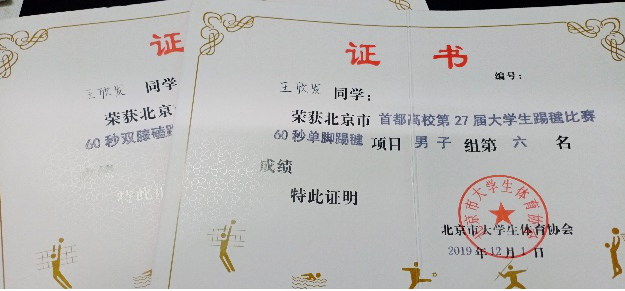 赛场上,气氛紧张但又不失活跃,每名队员均认真对待,尽己所能,展现公司风采与水平。经过艰苦努力,公司王欣发同学获得60秒单脚踢毽项目男子组第六名、60秒双膝磕踢项目男子组第八名。同时,公司荣获体育道德风尚奖。