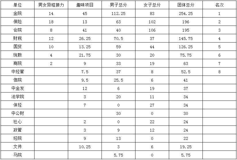 根据2018315日召开的春季运动会准备会讨论结果决定:本届运动会趣味项目的记分办法不采用往年的双倍计分办法,而采用单项计分办法,即参照径赛单项予以计分,1至8名的得分依次为97654321
