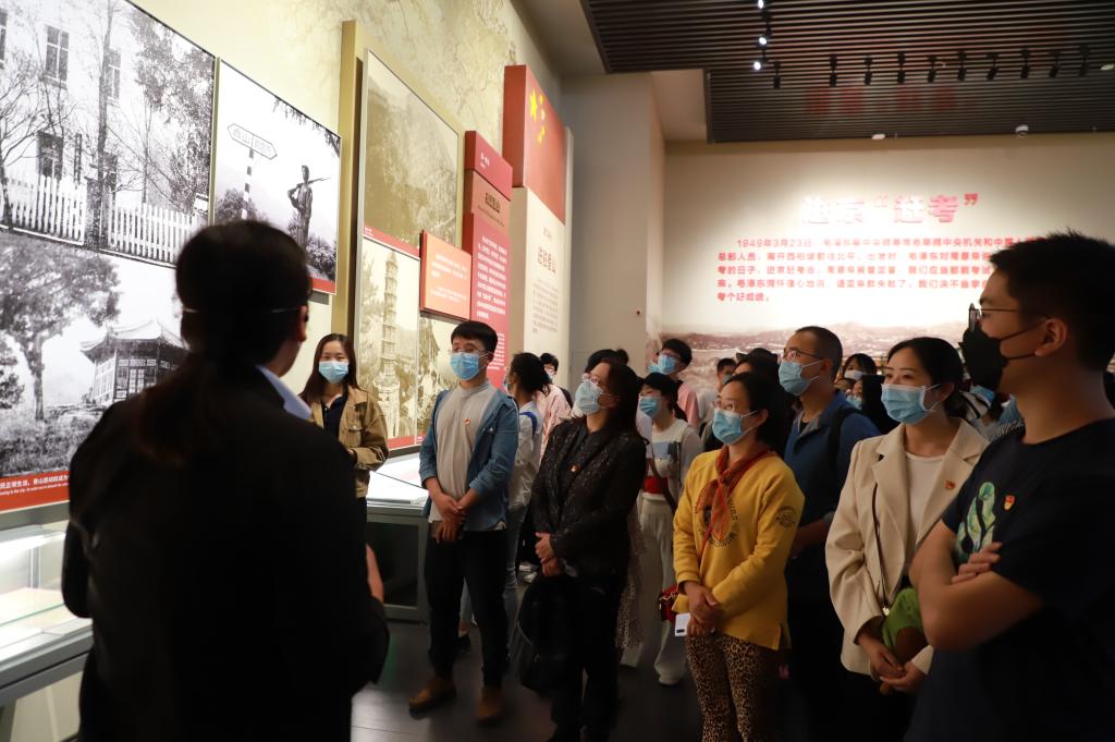 当日下午14时,参观队伍到达香山革命纪念馆,在讲解员的引导下下开始参观学习。本次参观活动主要涉及香山革命纪念馆内陈设的《为新中国奠基——中共中央在香山》展览,展览共分五个部分,真实记述了从1945年北平解放,中共中央“进京赶考”到1949年新中国成立这一段历史,详细描绘了在这一特殊历史时期,以毛泽东同志为核心的党的第一代中央领导集体带领全党和人民解放全中国的革命斗争历程。在参观过程中,同志们重温了解放战争时期我党革命先烈的奋斗精神,和身为一名党员的初心、使命。在参观过程中,同志们认真参观,积极讨论,气氛高涨。参观结束后,全体活动参与者饱含着对革命先辈的崇敬之情和对党和国家的热爱,自发于展馆门前齐唱红歌《没有共产党就没有新中国》,第二员工党支部党员于展馆附近重温入党誓词。