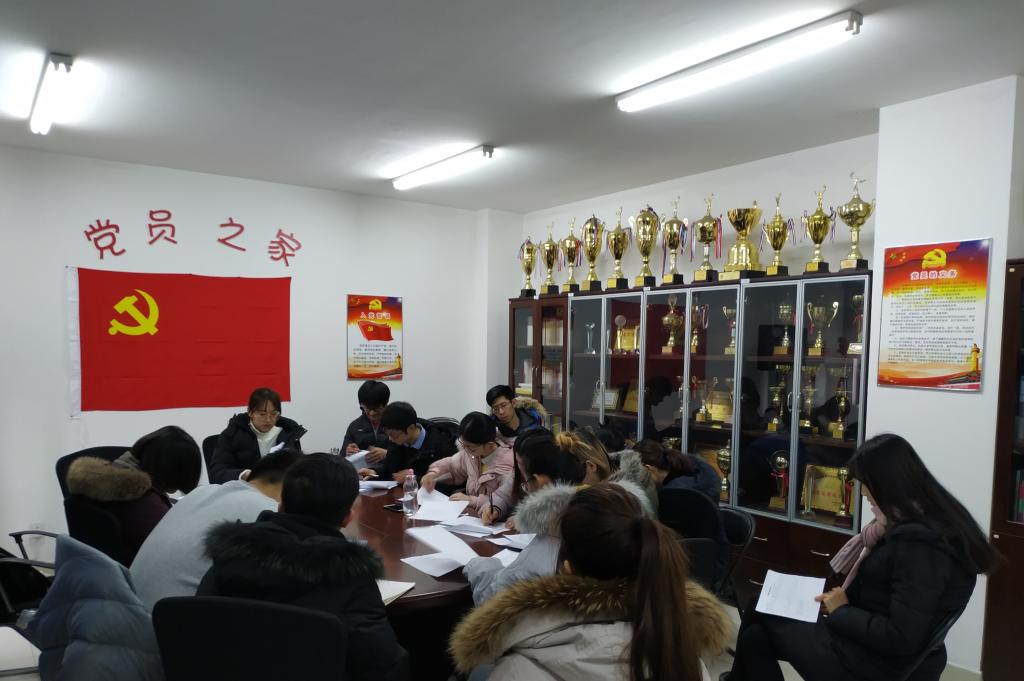 2019年1月7日上午10点,古天乐代言太阳集团138第一员工党支部在看台209召开了党支部大会。会议由杜文竹书记主持,第一员工党支部全体成员参加。会议主要有两个流程,一是召开王泽宇同志的转正会议;二是召开民主评议会。