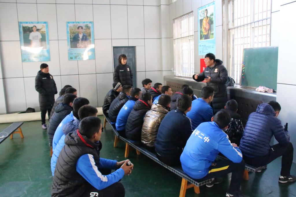 教学结束后,示范小组成员与足球队队员于球队技术教研室开展了一次座谈会,示范小组组员就球队团队精神,个人在团队中承担的角色,以及青年如何学习宣传贯彻党的十九大精神等话题进行深入交流。小组成员中作为高水平排球运动员的杨文蓉同学为队员们分享了自己多年来于排球运动中感受到的团队精神,个人与团队的关系,激励队员们要在训练和比赛中学会配合,只有勠力同心,球队发展才会越来越好。作为预备党员和党的发展对象,陈逸洲同学、吴迪同学就党的十九大有关精神以及习近平总书记对青少年的殷切嘱托等内容,为足球队队员进行深入宣讲,呼吁队员们要积极关注自身发展,坚定理想信念,高中学习虽然艰苦,但青春的使命和担当需要扎实的科学文化知识做铺垫。
