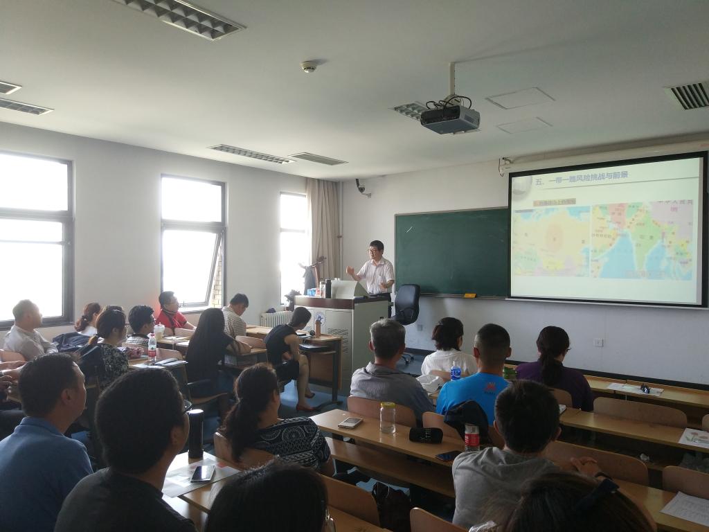 申教授在近一个半小时的时间里,由浅入深,从 “一带一路”倡议的概念、提出的时代背景、主要内容、“一带一路”倡议的战略意义、存在的风险于挑战等五个方面,全面而深入的解读我国“一带一路”倡议,并围绕“一带一路”倡议相关的问题提出了自己的思考与观点。讲座结束后,党员同志们结合自身的专业研究和申教授进行互动,申教授针对提问也发表了自己的看法。