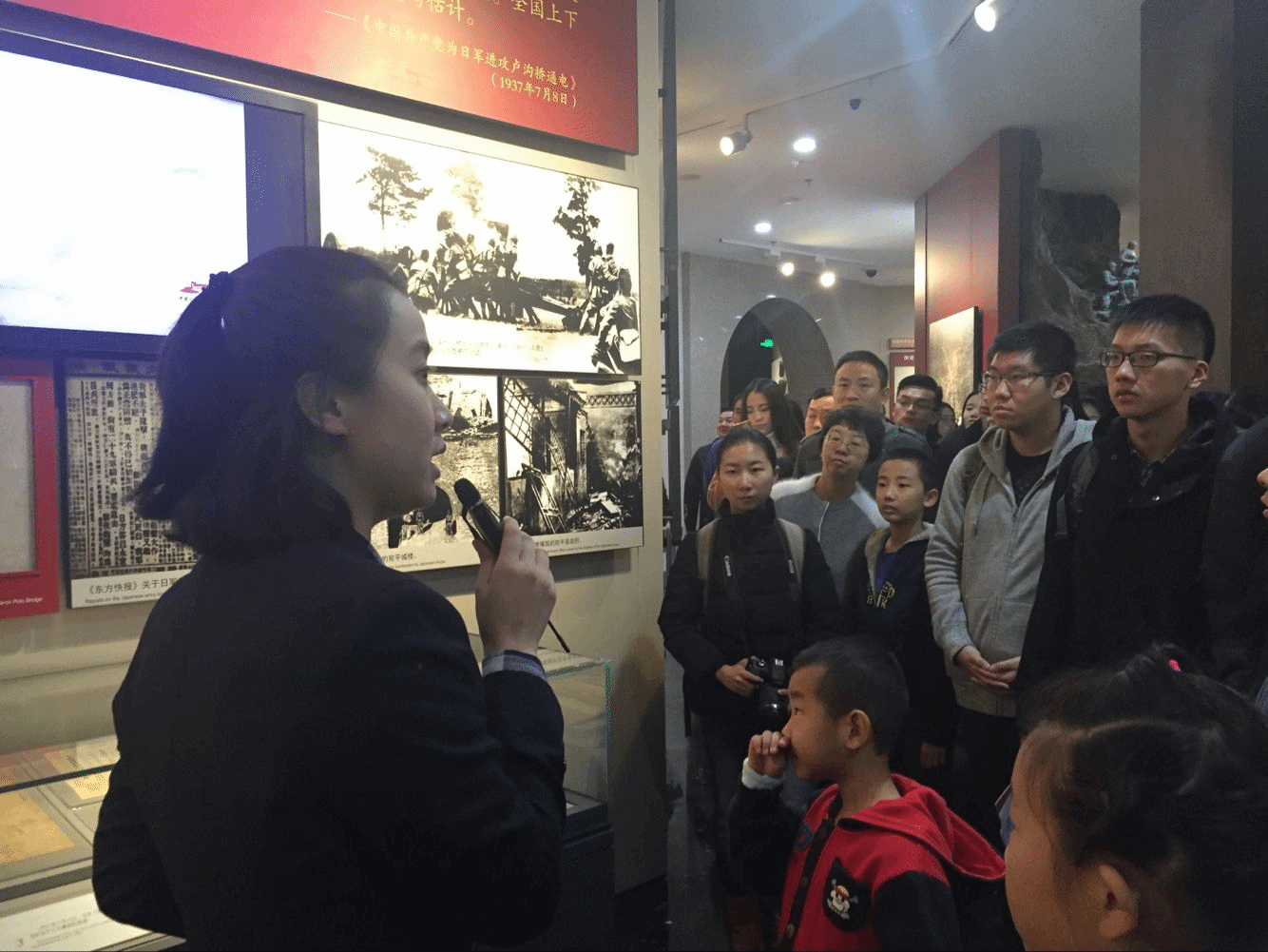 上午10点,同学们开始参观中国人民抗日战争纪念馆。纪念馆记录了从中国屡受侵犯、人民奋起、开始局部抗战,再到抗战胜利携手各国共建世界和平的整个历史过程,纪念馆中陈列着丰富的图片、资料、和抗战时期的物品,使参观者能够更清楚地了解每个时期的战争状况、抗战战士们的生活情况、历史的发展进程。