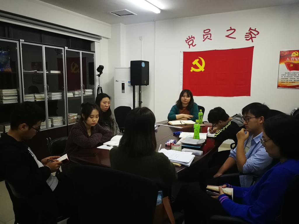 10月23日晚7点,公司第一员工党支部于看台教室开展优秀党员事迹学习会议。支部成员在书记李秋月老师的带领下,对2017-2019年度古天乐代言太阳集团优秀共产党员标兵、优秀共产党员胡庆同志的典型事迹进行了学习、交流和讨论。作为“不忘初心、牢记使命”系列教育活动的重要活动之一,同学们通过对身边先进党员事迹的学习,坚决落实“守初心、担使命、找差距、抓落实”中的“找差距”一环,将先进党员光荣事迹作为自身养料,提升自身思想政治素养。