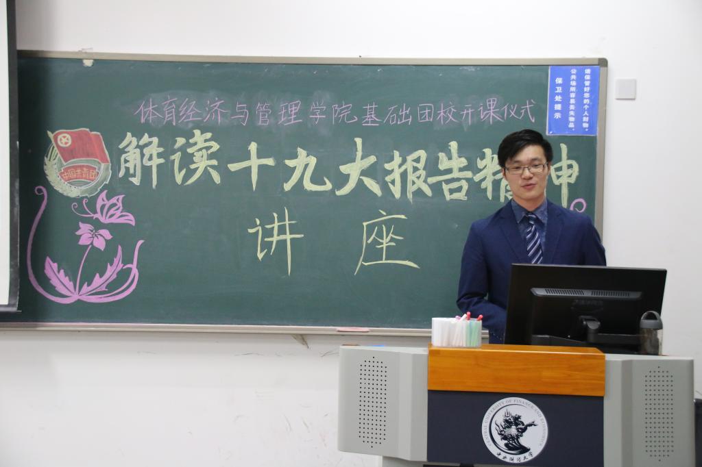 为深入学习贯彻党的十九大精神,加强青年学子对党的路线、方针和政策理解和把握,引导公司青年学子关注时事动向,关注党和国家大政方针。2017年11月10日18:30,公司于沙河校区东区主教307教室顺利举办2017年基础团校开课仪式暨“解读十九大报告精神”讲座。此次讲座由公司团总支员工会组织部部长宾昊同学主持,公司党委书记林琼教授,公司第二员工党支部书记、2016级本科生辅导员胡庆老师应邀出席,参与此次活动的还有公司团总支员工会主席团全部成员,2015级、2016级、2017级本科生共青团员