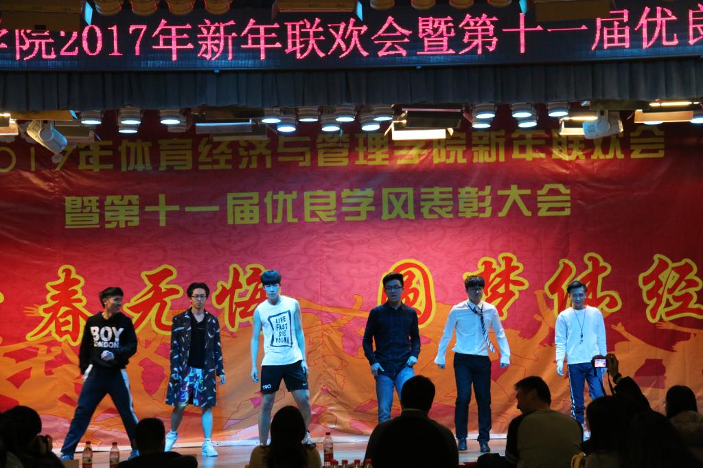 伴随着4个16级青春可爱的姑娘表演的舞蹈《新年快乐》,联欢会接近尾声“鼎故辞旧,旧雨重逢,丰年旧事娓娓道来;万象更新,新硎初试,龙马新声气势恢宏;我中央财大,如龙有灌日触天之才,吞吐大荒;我体经学子,似马有腾跃四方之志,担负乾坤”。忠诚、团结、求实、创新,这是中财大对我们的期许;笃思体行,我爱体经,体经会是一种信仰;过去的一年,我们尽善尽美,尽力做到最好;新的一年,我们当再接再厉,再创辉煌!“青春无悔、圆梦体经”2017年新年联欢会暨第十一届优良学风表彰大会圆满结束。