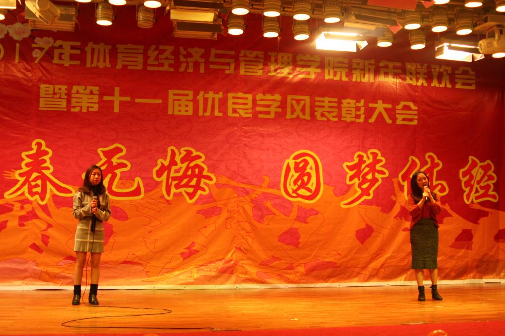联欢会才艺表演的同时也进行了三次优良学风表彰有关奖项的颁奖和两次联欢会抽奖。优良学风表彰有关奖项分别为体经才艺奖、体经学习进步奖、体经科研实践奖、体经优秀志愿者奖、体经自强奖、体经风尚奖、体经优良学风奖、体经优良学风宿舍奖、优秀员工干部奖、体经人物奖。出席联欢会的老师们依次分别为获奖员工颁奖。优良学风表彰旨在激励体经学子在老员工活中再接再厉、在无涯学海中笃定前行、在科研实践中屡创新高、在志愿服务上尽善尽美、在自我完善上勇往直前。同时通过表彰也为16级新生树立良好的朋辈榜样引领。