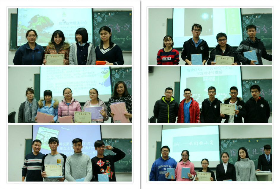 在整个活动的展示中,每个宿舍都表现出自己独一无二的宿舍文化,在欣赏其他宿舍的展示过程中也加深了同学之间的了解,增进了宿舍间的友谊。在同学们精彩纷呈的表演及评委综合打分后,315宿舍被评为宿舍文化节总冠军、313宿舍获得分冠军、314宿舍获得最佳创意宿舍奖、732宿舍获得风采优秀宿舍奖,723宿舍获得文化优秀宿舍奖,726宿舍获得卫生优秀宿舍奖。