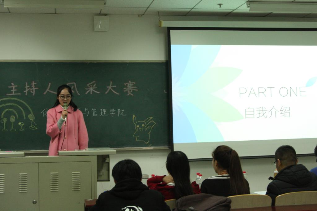 18点30分,比赛正式开始。第一个环节是自我介绍,选手们依次上台进行两分钟的自我介绍。同学们妙语连珠,落落大方,充分展现了个人魅力。接着进行的是模拟主持环节,选手们现场随机男女搭配,搭档主持。他们模拟的情景各不相同,有迎新晚会的现场,有新闻30分的播音,有活动纪念日的主持……尽管准备时间仅有两分钟,但选手们仍镇定自若,配合默契,出色地完成了挑战,展现了良好的台风。