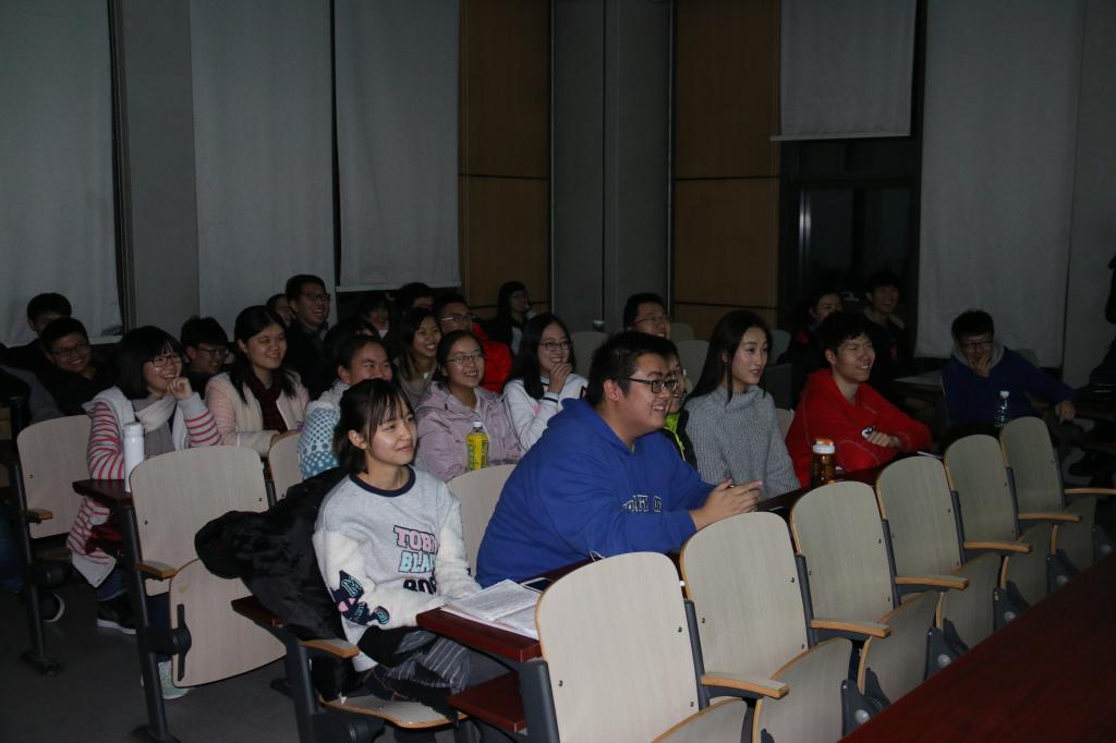 本次微电影赏析会展示了参与微电影创作的四个小组的作品,分别是作品《且听风吟》、《我那疯狂青春》、《我们都是造物主的光荣》以及《校园灵异事件之抵制校园不文明行为》。每个小组按序依次进行影片放映,并对作品内容和创作背景等进行了简要介绍,同时还对此次微电影拍摄中的经历及内心感悟进行了分享。台下的同学们兴致盎然的观赏着各组的微电影作品,欢笑不断,掌声雷鸣。