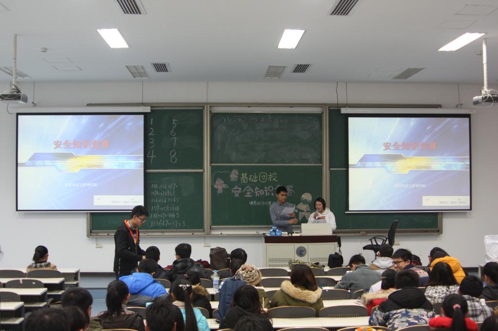 下午4点,大一大二的同学们准时到达了教室。活动中一共分成了8组,每组中均有大一大二的同学,共同合作,答题竞赛。答题开始前,主持人介绍了竞赛规则,本次问答竞赛共有30道题,涉及到消防、交通等方面的安全知识。为了公平抢答,主持人设置了六个号码,最先打进电话的同学获得回答问题的权利。每个问题答对加分,答错扣分,分值最高的前三个队伍获得奖励,分值最低的接受惩罚。