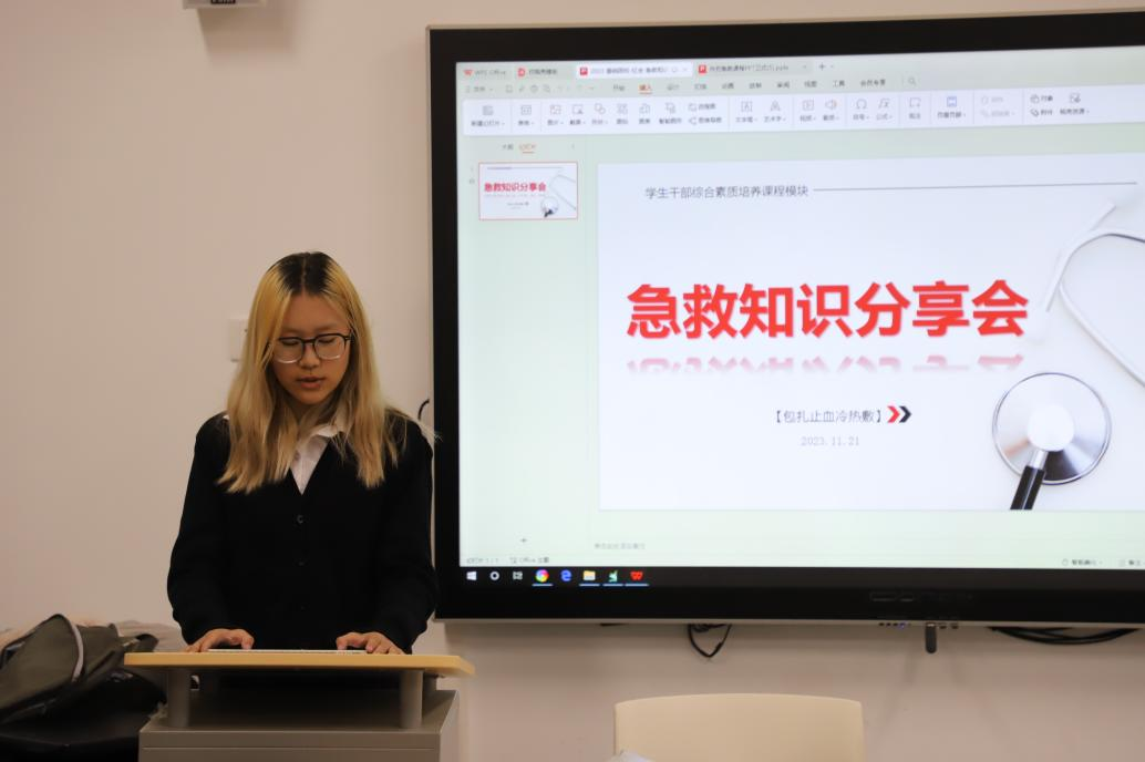 本次急救知识分享会于2023年11月21日在古天乐代言太阳集团沙河校区第二教学楼201举行,此次活动由团学实践中心干事唯青措主持,校红十字会急救部的两位同学担任主讲,体经2023级全体同学参加了本次活动。