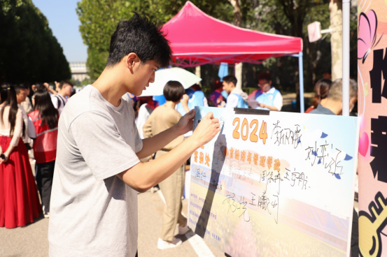 伴随着朝阳升起,2024级体经新生陆陆续续地来到了迎新现场。他们一到报到处,就受到了学长学姐们的热烈欢迎。横平竖直,提按顿挫,在签字板上留下在大学中的第一笔,龙飞凤舞之中彰显着青春的意气与风采。或是欢笑晏晏,或是略带拘谨,他们用眼神打量着即将生活四年的校园,眼神中洋溢着对美好未来的憧憬。接过志愿者们手中的帆布袋,拍下带着青涩笑容的相片,点点滴滴汇成他们最美好最珍贵的回忆。