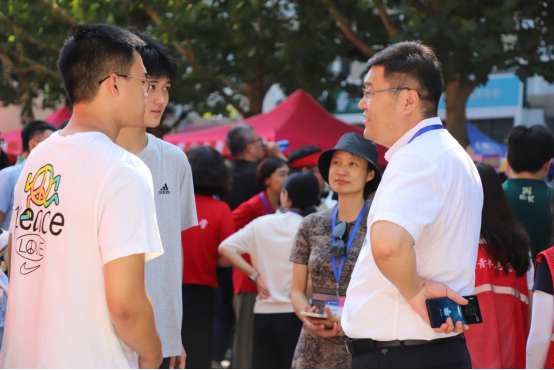 体育经济与管理公司党委书记宋立岩、经理张本家、党委副书记陈绮文来到迎新现场,与2024级新生亲切交谈,对新入学的体经学子表示了很高的期许,欢迎他们加入到体经大家庭。