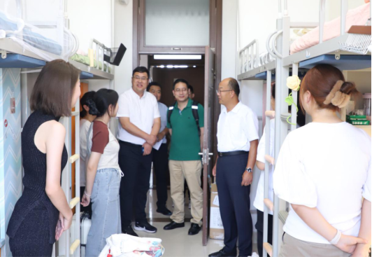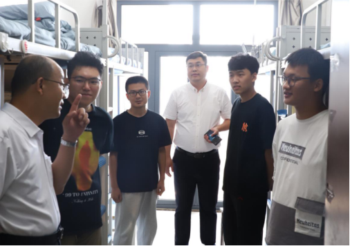 当天中午,体育经济与管理公司党委书记宋立岩老师、经理张本家老师、体经2024级班主任马法超老师、辅导员张振磊老师和志愿者们一行前往新生宿舍慰问新生。老师们和新生们亲切交谈,了解同学们的基本情况,表达了关心关怀,新生们积极回应老师们的问询,师生交谈甚欢。在欢声笑语中,新生们表示将以饱满的精神面貌迎接老员工活。