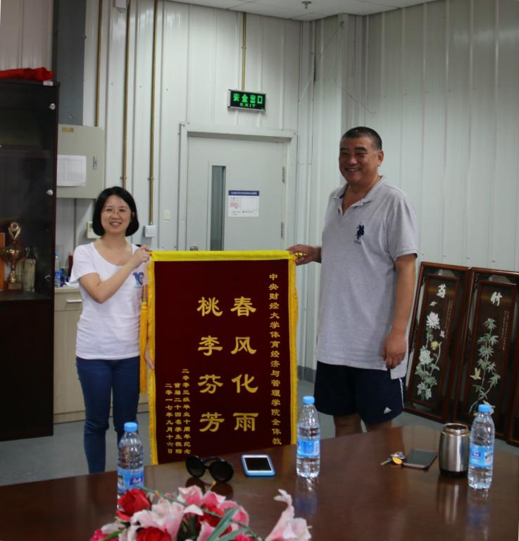 “管他十年混如何,君卿归来仍少年”。下午4点,毕业十周年师生座谈会顺利召开。员工们向当年一样面对亲爱的老师们一一汇报了自己毕业十年来的工作、生活情况,表达了对母校和老师培养之恩的感谢,发言之间彼此相互调侃表达了对昔日同窗情、舍友情的怀念。出席座谈会的体育经济2003级班主任李毳老师,任课教师姜春华、张自如、闵捷、李永红、李坤等老师亲切寄语,表达对员工们的关怀和祝福。座谈会最后,员工代表向公司赠送印有“春风化雨,桃李芬芳”的锦旗和刻有“梅兰竹菊”的屏风,并依次向出席座谈会的老师们赠送鲜花,再拜师恩。