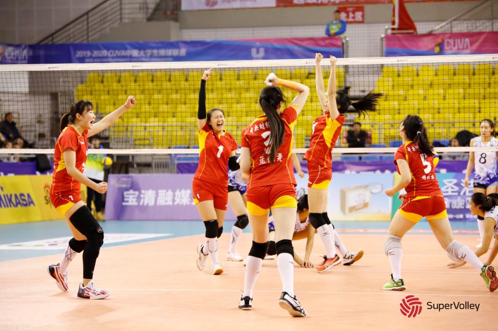 决赛伊始,中财女排的姑娘们放下包袱,不断冲击对手,面对北京体育大学女排的顽强反抗,姑娘们沉着应对,根据场上变化冷静分析,发挥自己的应有水平。最终,中财女排以大比分3:1击败北京体育大学女排,终结北京体育大学女排北方赛区“五连冠”!