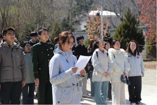 庄重的祭扫仪式在烈士纪念碑前举行。全体师生肃立垂手,聆听陵园讲解员讲述昌平地区革命先烈浴血抗战的历史。员工党员代表周雨彤在悼词中深切缅怀先烈,表示“一定要铭记英烈精神,以青春奋斗践行新时代使命”。陈绮文副书记在讲话中指出,此次活动既是党史学习教育的实践课堂,也是锤炼党性的精神洗礼,勉励师生将先烈精神转化为奋进动力,在专业领域勇担时代重任。