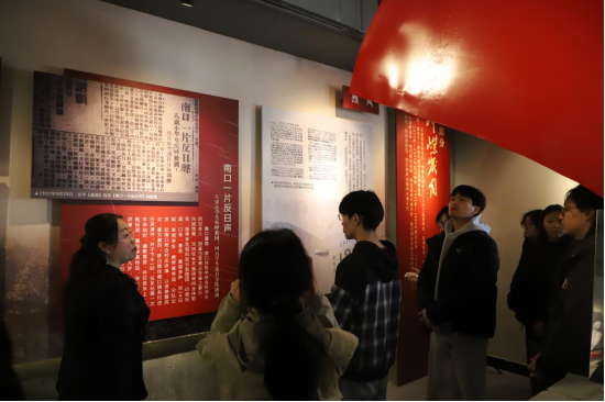 在烈士纪念馆内,师生通过历史照片、抗战实物及文献资料,系统了解昌平军民抗日斗争史。展柜中斑驳的军用水壶、生锈的手枪等文物,生动还原了革命先辈艰苦卓绝的战斗历程。